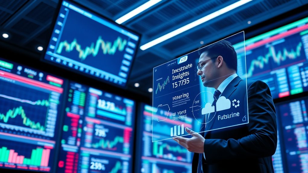 AI systems handle market volatility and unpredictable events by continuously analyzing real-time data and adjusting strategies quickly. They use advanced algorithms to detect sudden changes, filter noise, and execute trades or alerts efficiently. While they can react faster than humans, you should remember that AI isn’t infallible; unexpected events can still surprise the system, so it’s essential to combine AI insights with human judgment for best results.