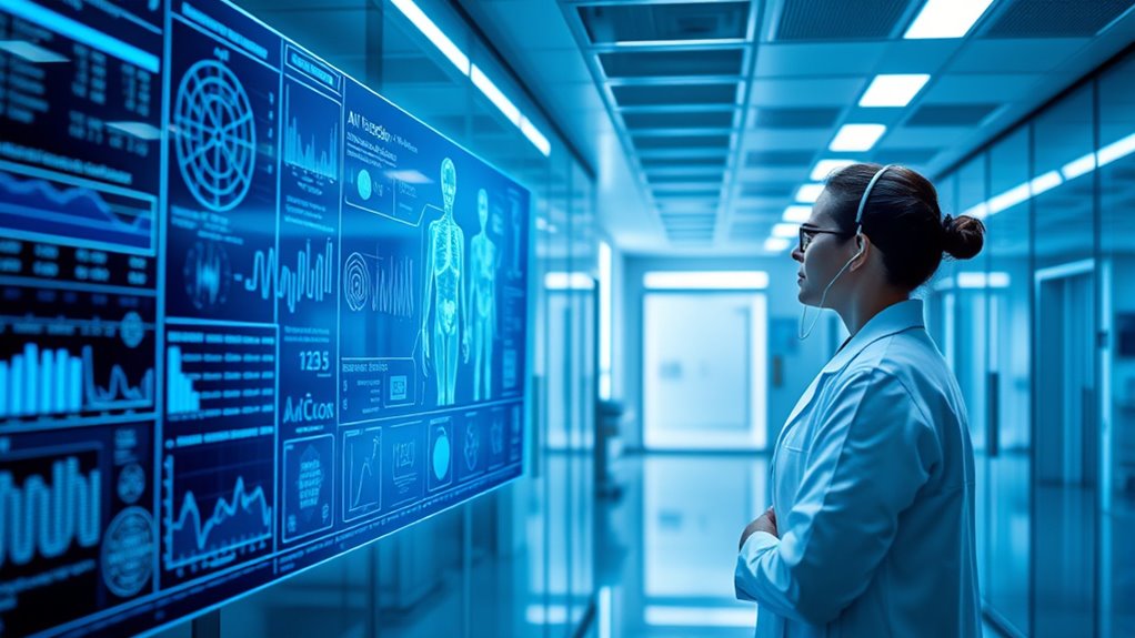 Data privacy and ethical considerations remain vital as AI becomes more embedded in healthcare. You should feel confident that your personal health information is handled with care, following strict regulations and security protocols. Transparency about how AI models make predictions is essential, so you understand the basis of your care decisions. As these technologies evolve, ongoing collaboration between clinicians, data scientists, and policymakers will guarantee that predictive health benefits everyone without compromising privacy or trust.
