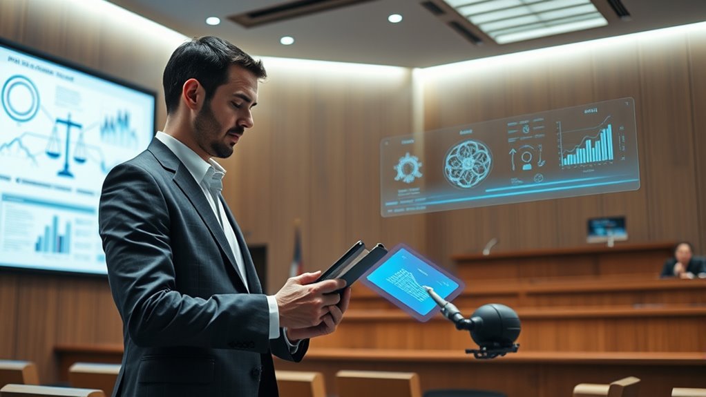 Furthermore, integrating AI with data analysis from diverse legal sources can improve the comprehensiveness and accuracy of legal research, benefiting both practitioners and clients. However, integrating AI into the legal system isn’t without challenges. Concerns about data privacy, bias, and transparency need addressing to guarantee these tools serve justice fairly. You should be aware that AI models are only as good as the data they’re trained on, and biased inputs can lead to unfair outputs. As the technology advances, it’s essential to develop regulations and standards that promote ethical use while harnessing AI’s full potential. Overall, AI’s role in the legal industry is poised to grow, promising greater efficiency, accessibility, and fairness—if implemented thoughtfully. This ongoing transformation invites legal professionals to adapt and innovate, shaping a future where technology and justice work hand in hand.