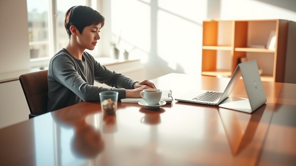 To juggle less and achieve more, practice mindful multitasking by minimizing digital distractions—turn off notifications, close irrelevant tabs, and set dedicated times for checking messages. Focus fully on one task at a time and switch intentionally, using techniques like grouping similar activities for better efficiency. Creating a distraction-free environment and taking regular breaks also boost focus. Keep exploring these science-backed methods, and you’ll discover how to master your workflow even better.