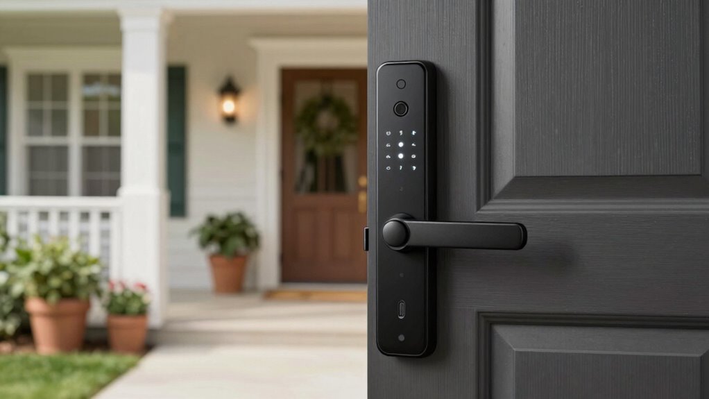 Smart locks aren’t compatible with all door types. Your door material, like wood, metal, or glass, influences lock compatibility. For example, some smart locks work best with wood doors, while others are designed for metal or composite doors. Before buying, check the lock’s specifications and verify it matches your door’s material and thickness. Proper compatibility guarantees a secure fit and smooth installation, preventing future headaches.