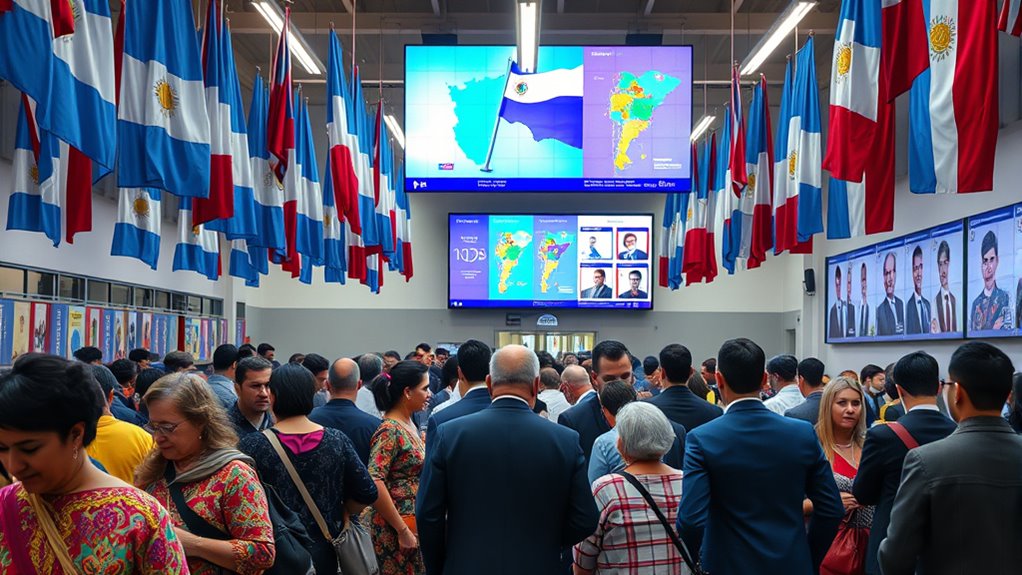 Argentina’s 2025 parliamentary elections are shaping up as a highly competitive contest, with parties strategizing early to win key seats and influence policy. You’ll see a mix of traditional parties, new movements targeting younger voters, and shifting alliances driven by economic issues like inflation, unemployment, and social welfare. Campaigns focus on stability and transparency, with coalitions often crossing ideological lines. To understand how these dynamics could reshape Argentina’s future, keep exploring what’s ahead.