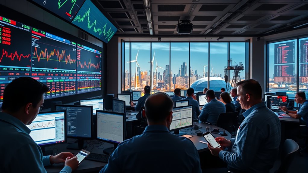 Renewables add a different layer of complexity. While they’re often praised for their stability and decreasing costs, their integration into the energy grid introduces new challenges. Variability inherent in solar and wind power—dependent on sunlight and wind speed—means supply can fluctuate unexpectedly, impacting energy prices. When renewable output dips, utilities might need to rely on more expensive backup sources, driving up costs temporarily. Conversely, periods of high renewable generation can flood the market, pushing prices down. Additionally, policy changes and government incentives aimed at accelerating renewable adoption can cause sudden shifts in investment flow, influencing both supply and prices. As the energy landscape shifts toward sustainability, you’ll find that these market dynamics become increasingly intertwined, heightening overall volatility. Moreover, advancements in energy storage technologies are gradually helping to mitigate some of this variability, but their widespread adoption is still developing.
