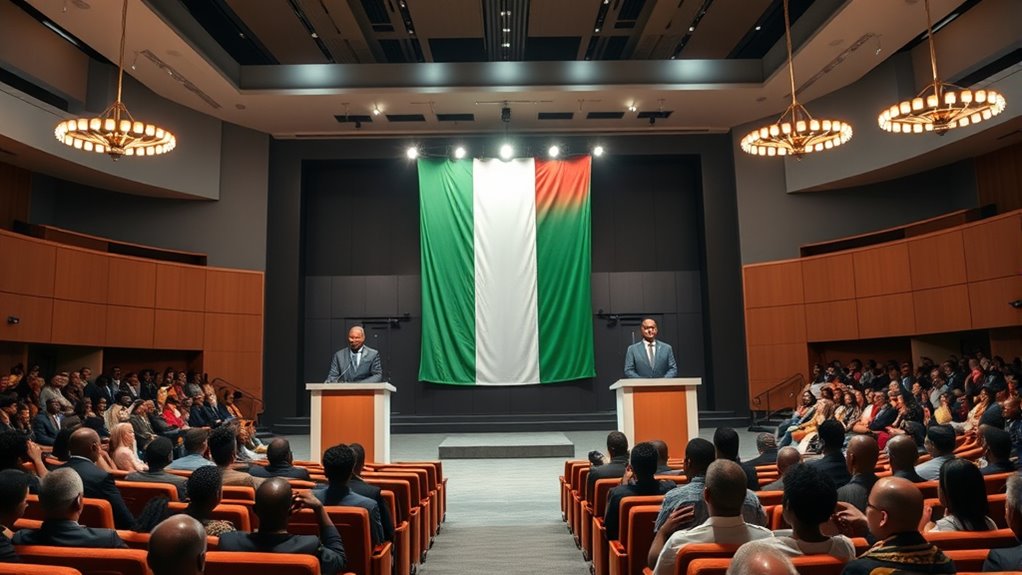 In Ivory Coast’s 2025 presidential election, you’ll see the incumbent, Ouattara, aiming for a third term amid constitutional debates, while opposition leaders push for reforms and transparency. Younger candidates focus on digital growth, education, and jobs. Key issues include economic development, security, climate change, and unity. The election could shape the country’s future direction and stability—if you’re curious about how these contenders’ plans might impact Ivory Coast’s path forward, there’s more to uncover below.