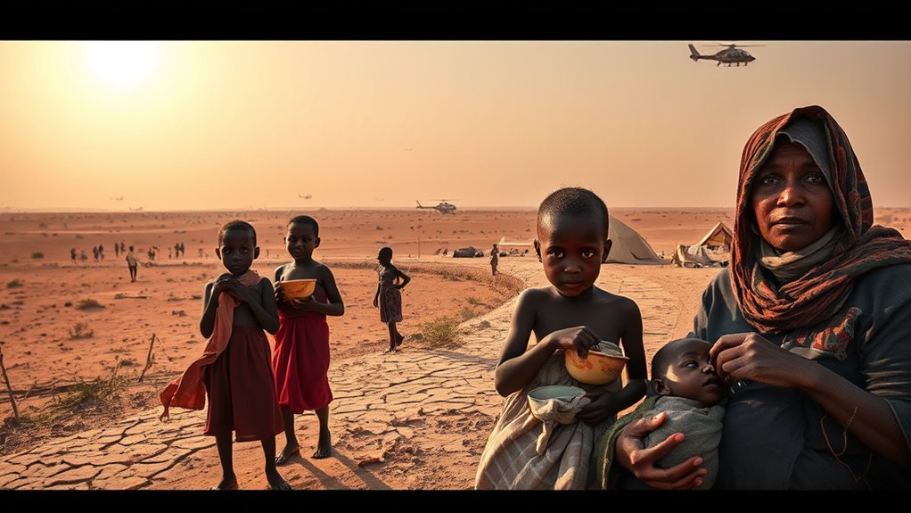 As you witness the barren fields and starving children, remember that while conflict and climate change threaten Sudan’s future, international aid offers a flicker of hope. The contrast between devastation and aid highlights your power to support change. By raising awareness or donating, you become part of the solution, turning despair into resilience. Together, you can help transform Sudan’s suffering into a story of recovery and hope amidst the chaos.
