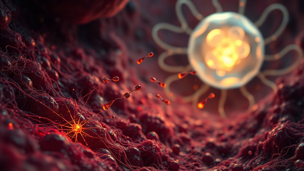Mitochondria help cancer cells adapt their energy by increasing ATP production, meeting the high demands of growth and survival. They shift their function to support rapid proliferation, especially under stress conditions like mechanical forces. You see, by relocating within the cell, mitochondria guarantee energy is available where it’s needed most, enabling cancer cells to survive hostile environments and continue spreading, making mitochondrial dynamics a key factor in cancer progression.